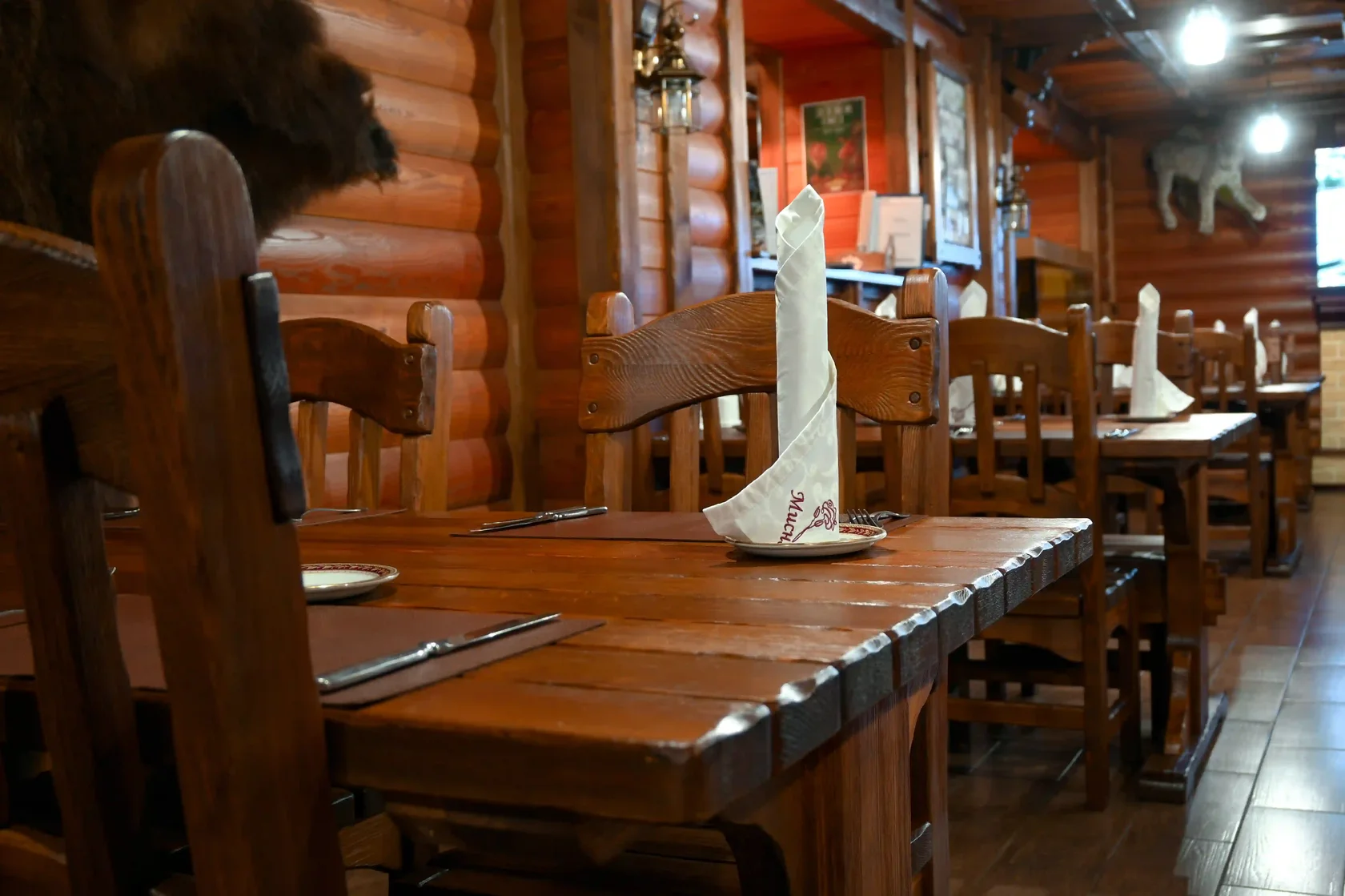 В основе банкетного меню — блюда русской и национальной кухни: стерлядь, косуля, муксун, приготовленные нашими поварами по оригинальным рецептам. В завершение трапезы — торт или десерт на выбор. Напитки — в широком ассортименте.